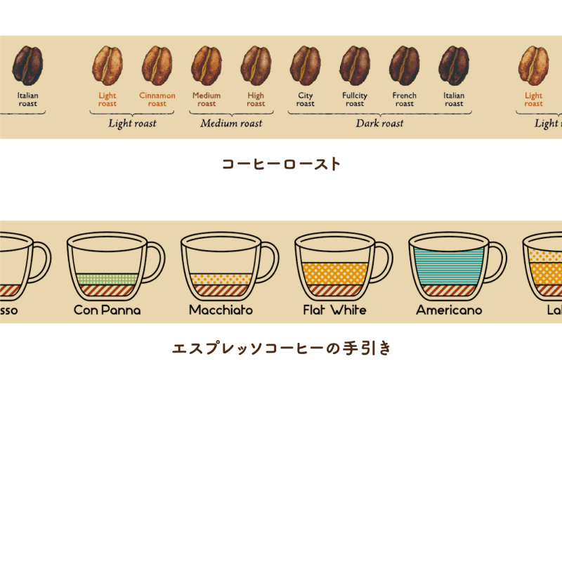 コーヒーデザインのテープを貼れば