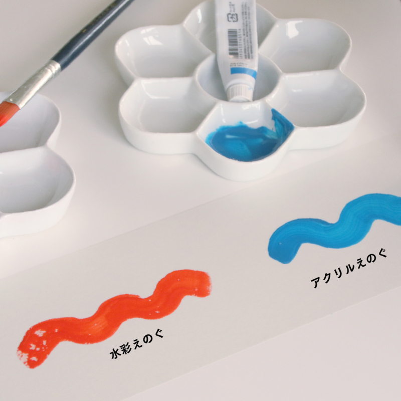 水彩えのぐで描く場合は、水分量を少なくしてくださいね。